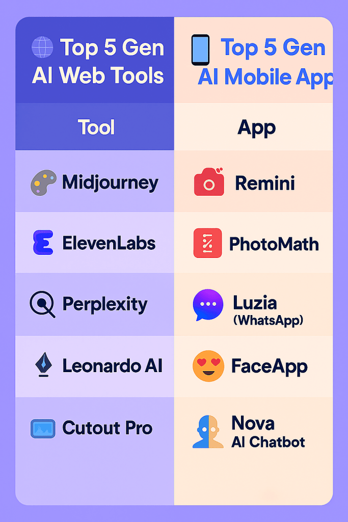 This is your curated cheat sheet: 5 powerful Gen AI web tools + 5 mobile apps that are changing the way we create, learn, edit, and plan—without the usual suspects.